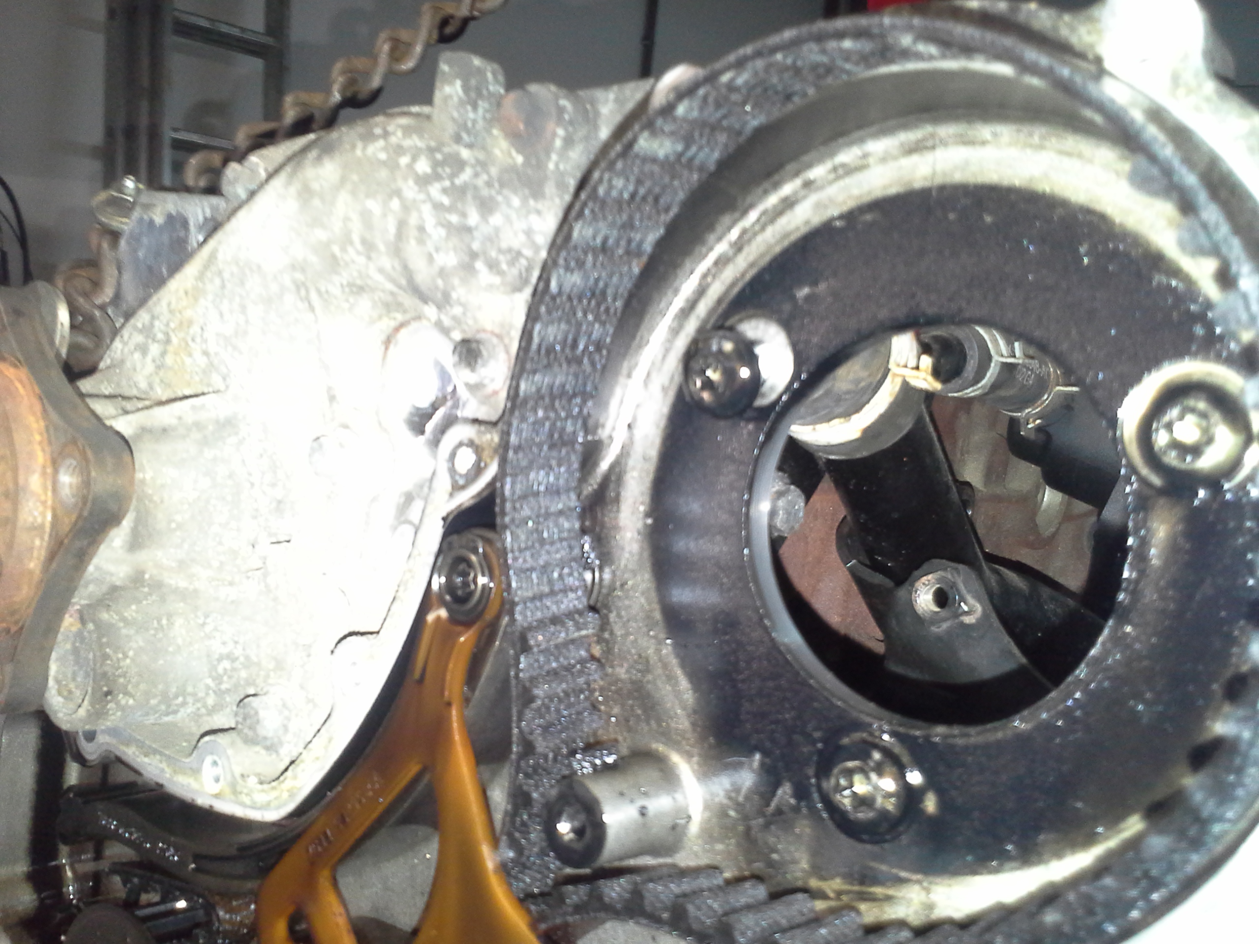 Přetržený rozvodový řemen.